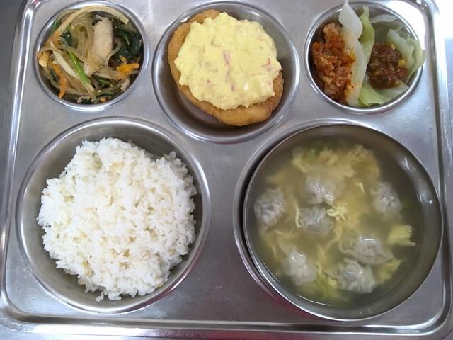 발아현미밥달걀만두국(1.5.6.8.9.10.16.18.)코코넛칠리새우&알새우칩(1.2.4.5.6.9.12.13.)잡채(1.5.6.10.16.)배추김치(9.)양배추쌈(자율)(13.)* 에너지/단백질/칼슘/철 739.8/25.9/105/11.7